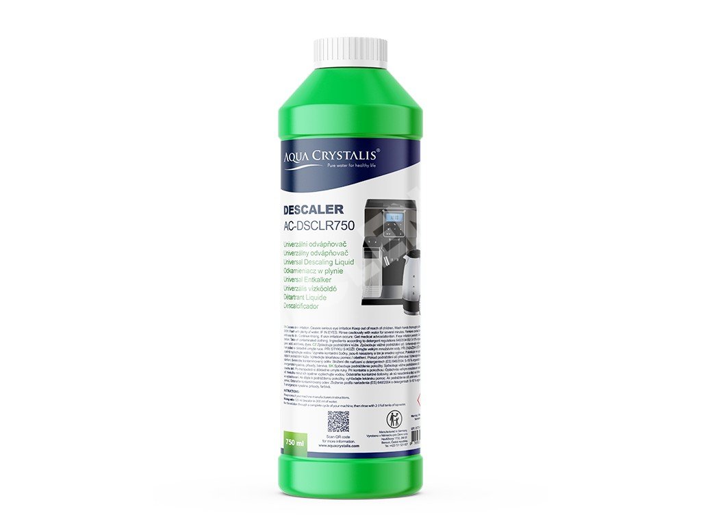 - 1× Aqua Crystalis AC-DSCLR750 (750 ml) – univerzální tekutý odvápňovač, který chrání topné těleso a vnitřní části kávovaru před usazováním vodního kamene. Balení vystačí až na 6–8 použití.