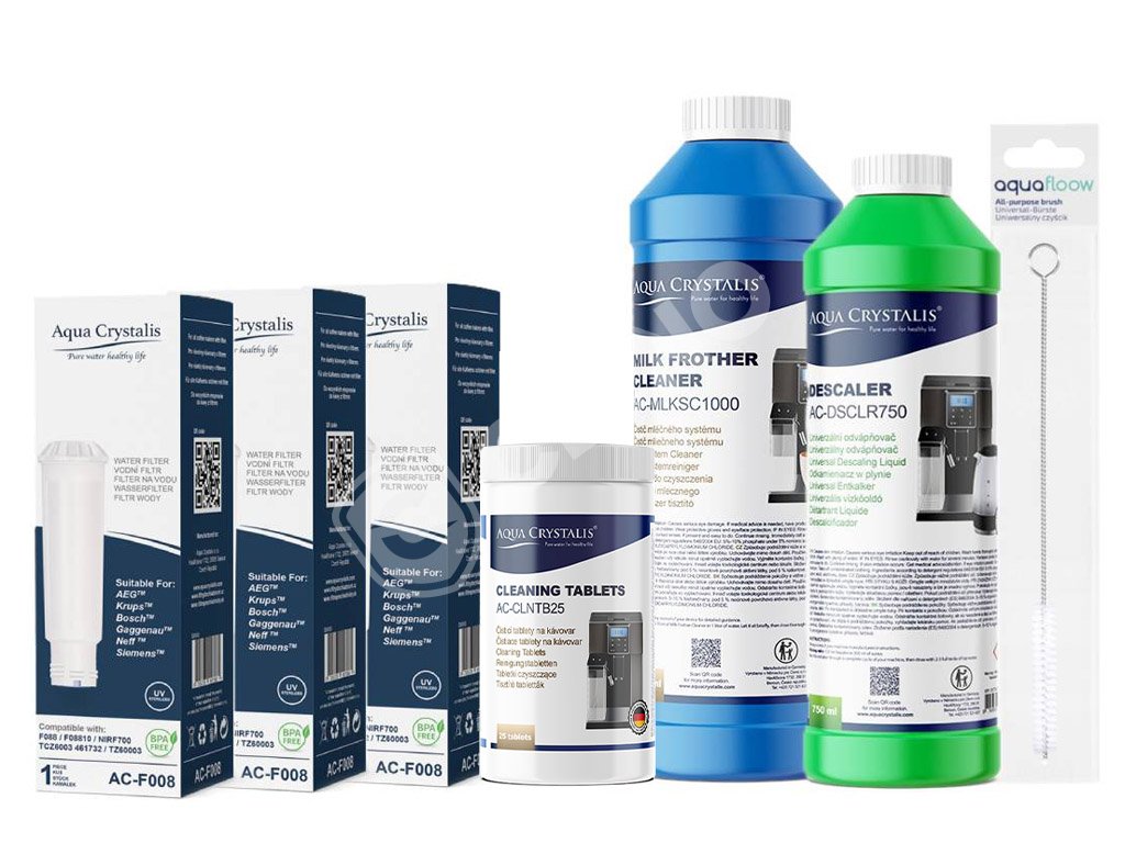 Sada Aqua Crystalis pro údržbu a čištění kávovarů Siemens, AEG, Bosch, Krups, Nivona