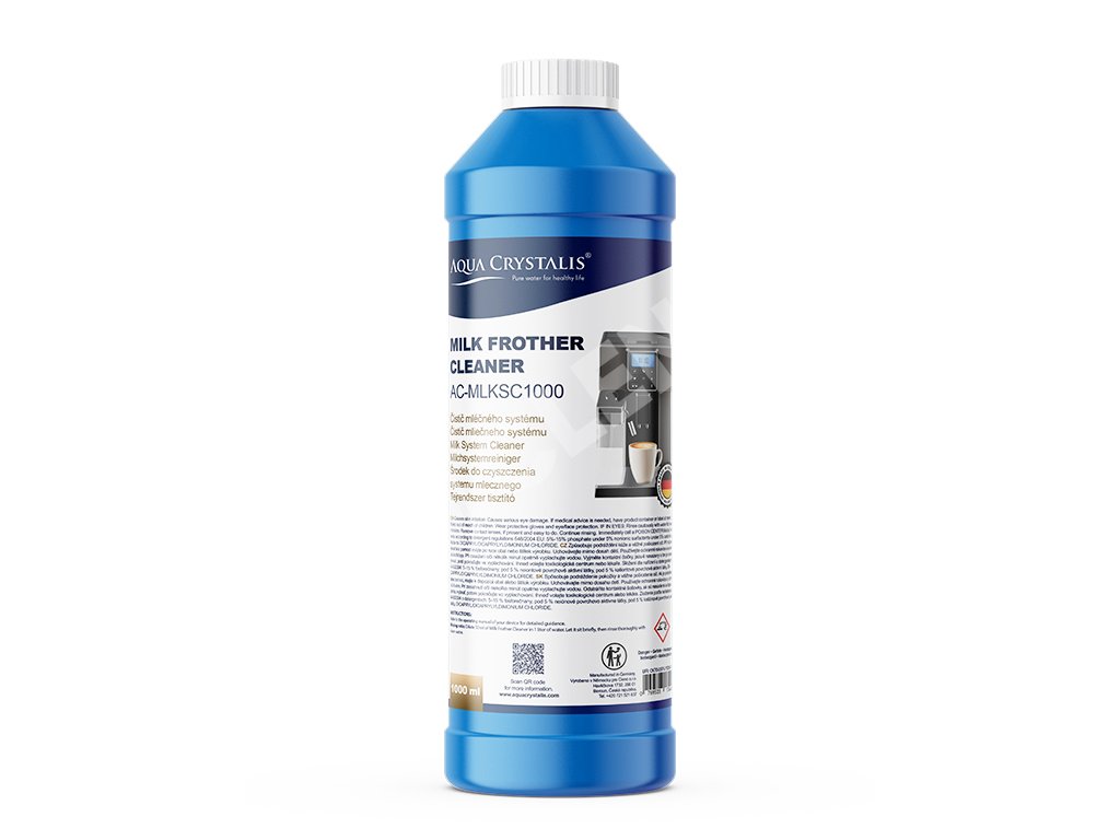 - 1× Aqua Crystalis AC-MLKSC1000 (1000 ml) – dezinfekční a antibakteriální čistič mléčných cest, který účinně odstraňuje zbytky mléka, bakterie a nepříjemné pachy bez vlivu na chuť kávy.