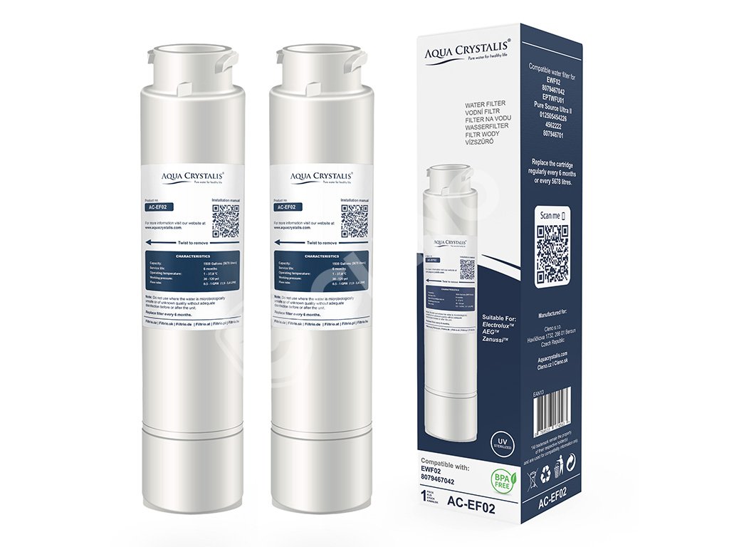 Vodní filtr Aqua Crystalis AC-EF02 je určený pro chladničky značek Electrolux, AEG a Zanussi. Zajišťuje čistou, svěží a chutnou vodu bez zápachu a škodlivin.